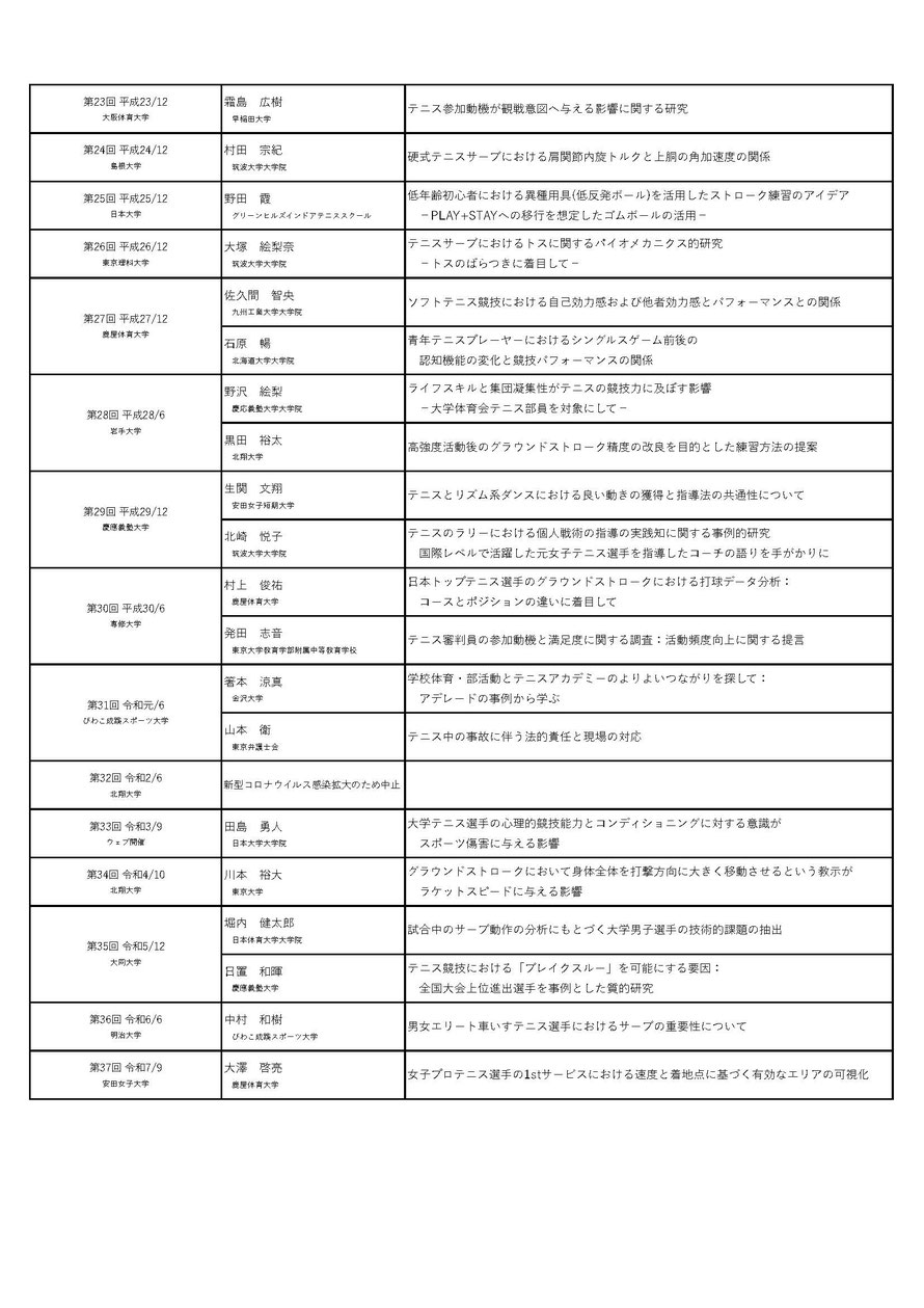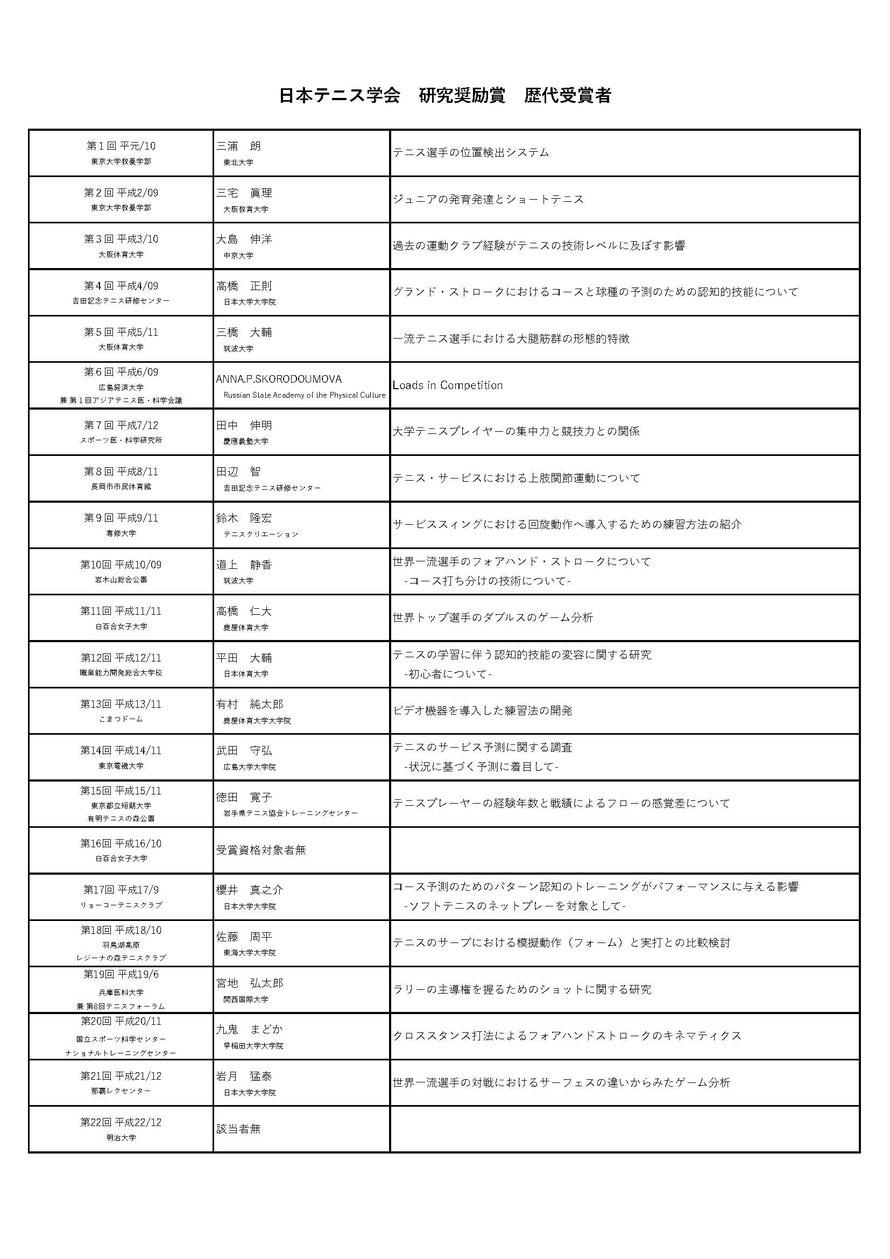 ②資格:テニス学会一般研究発表者のうち、年齢35歳以下の方。